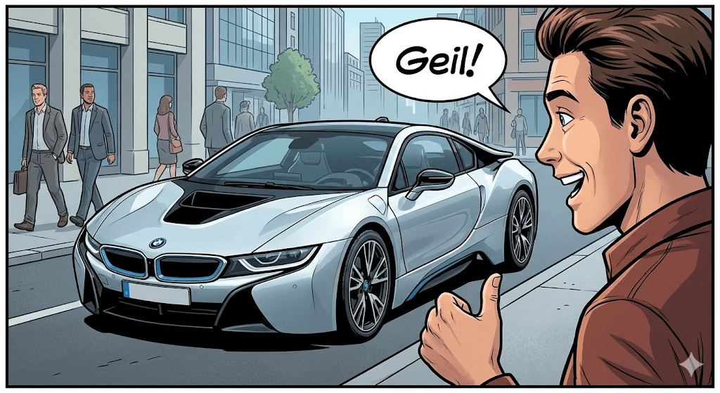 Originalmente significa «excitado sexualmente» (caliente). Pero en el 90% de los casos coloquiales actuales significa simplemente «Genial» o «Increíble». «Das Auto ist geil» (El auto está genial). ¡Úsalo con cuidado en contextos muy formales para evitar malentendidos!
